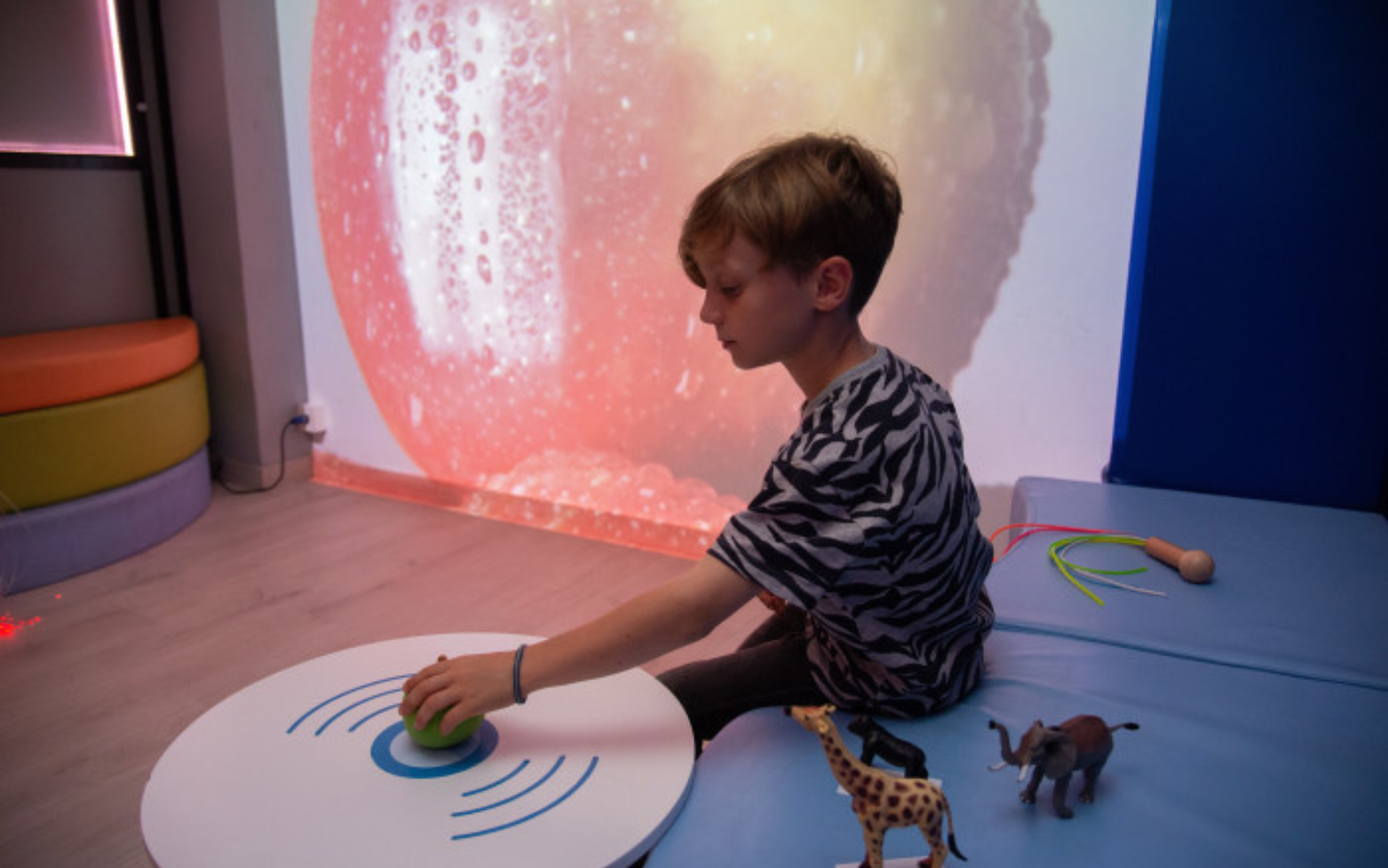 La Magic Table ouvre également de nombreuses possibilités thérapeutiques et éducatives. En associant des objets du quotidien — jouets, images, matériaux ou cartes — à des contenus multisensoriels, elle favorise l’attention, l’interaction, la mémoire, la compréhension de la relation cause-effet et la communication.