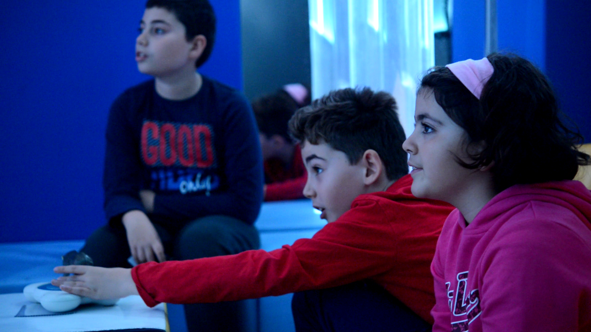 Le Sensory Step permet de contrôler l’environnement multisensoriel avec les pieds. Il suffit de poser le pied sur l’un des boutons colorés pour transformer l’ensemble de la salle en un nouvel environnement thématique. Images, vidéos, sons, vibrations et autres effets immersifs peuvent être déclenchés par le mouvement, encourageant l’engagement actif et le développement de compétences sociales, entre autres.