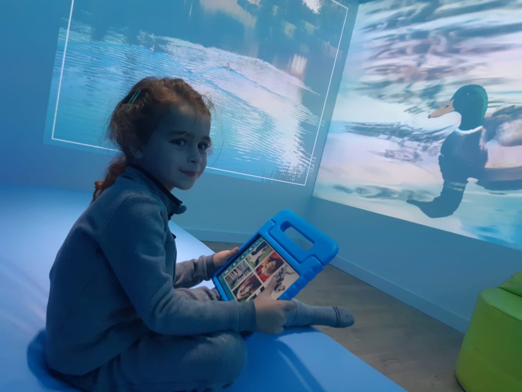 L’espace multisensoriel transforme le récit en une expérience immersive et interactive. Les histoires sont racontées à travers les projections, et au fil de la narration, les couleurs, les sons, les vibrations et les différents éléments de la salle évoluent en synchronisation avec ce qui se passe.